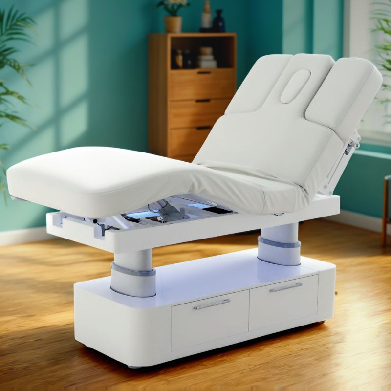 Этот массажный стол совмещает в себе продуманный дизайн, прочную металлическую основу и расширенный функционал с подогревом ложа. Благодаря телескопическим колоннам, нескольким электрическим приводам и удобным регулировкам каждая процедура становится максимально комфортной и для специалиста, и для клиента.