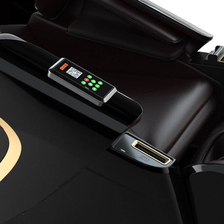 Прекрасное вендинговое кресло по приемлимой цене. Пульс управления встоен в кресло, что очень удобно. Можно оплачивать самртофонов с помощью QR кодов. Есть голосовая напоминалка клиенту об оплате. Очень классная функция нулевой гравитации, очень здорово расслабляет.